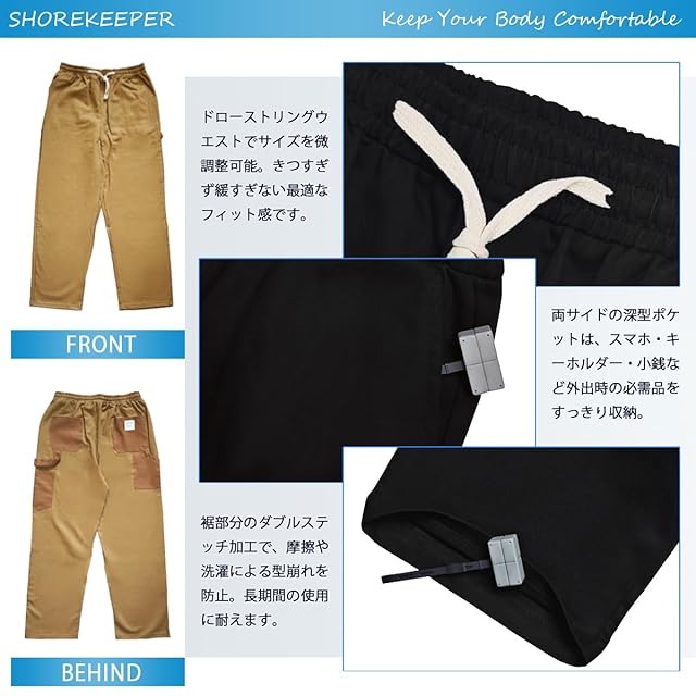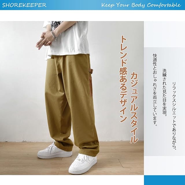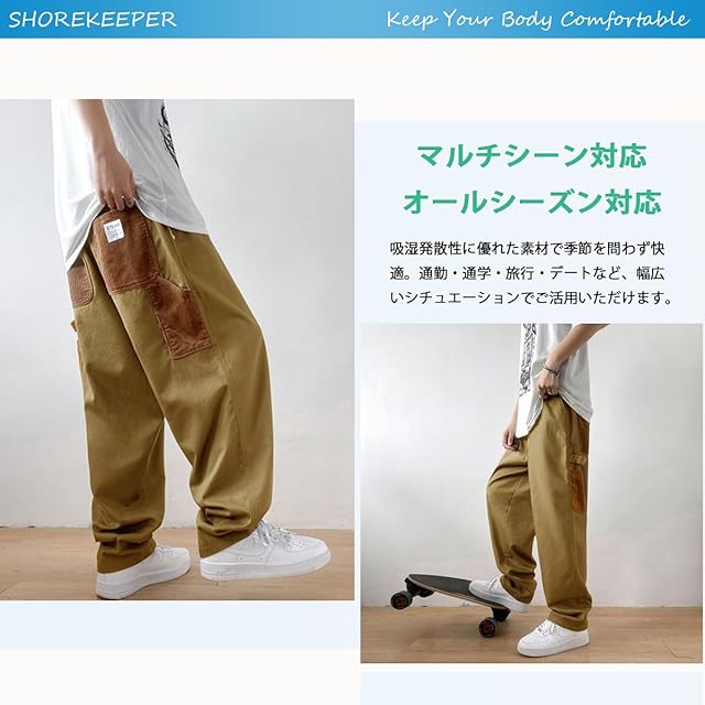 商品名:[SHOREKEEPER] ズボン メンズ ゆったり ロングパンツ ワイドパンツ カーゴパンツ 綿 ウエストゴム 調整紐 人気 快適 大きいサイズ オールシーズン スラックス (JP, アルファベット, M, カーキ)
