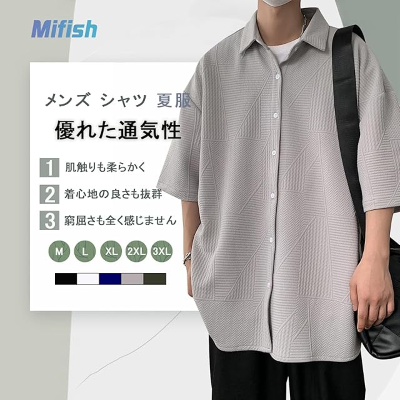 商品名:[Mifish] メンズ シャツ 半袖 夏服 無地 大きいサイズ カジュアル オシャレ おしゃれ ゆったり シンプル 軽い 柔らかい 人気 服 シャツ メンズ