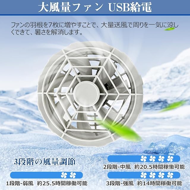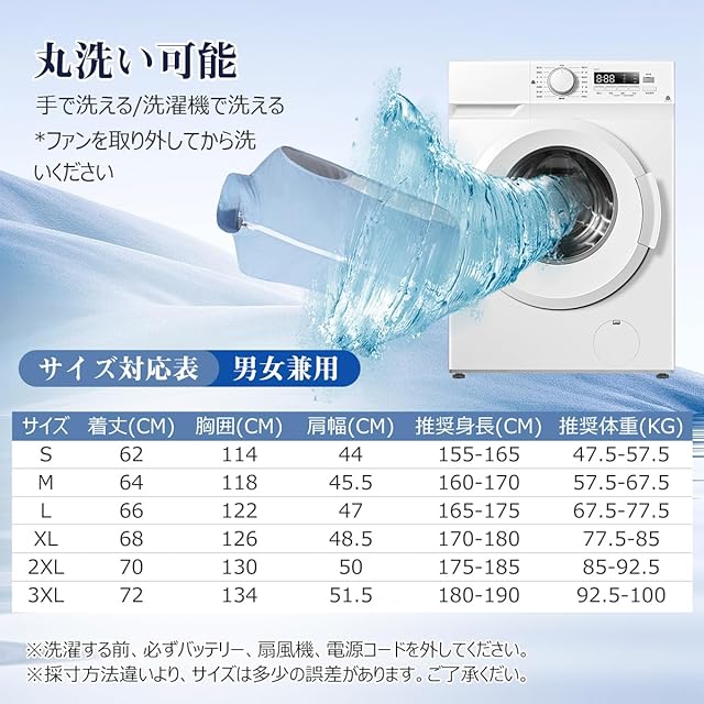 【セット内容&安心サポート】このファン付き作業服の裏地は100%ポリエステルになり、サイドポッケト2つ、内側電池収納ポケット2つ、収納性にも優れています。バッテリーや作業着ファンなどを取り外せばコンパクトに畳めるので、収納に便利です。※セット内容:扇風ベスト*1、ファン*2、バッテリ—*1、ケーブル*1、充電用USBケーブル*1 、日本語説明書*1。当社製品は12ヶ月の期間がございます。万が一商品に不備等があった場合、いつでもお気軽にお問い合わせください。注意:定期に布でファンを清掃してください。異物がファンブレードに引っかかると、起動時に正常に動作しない可能性があります。