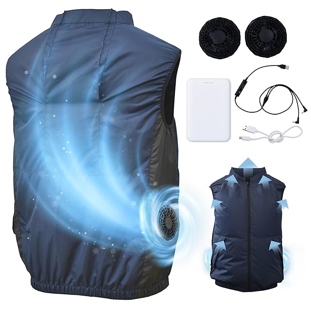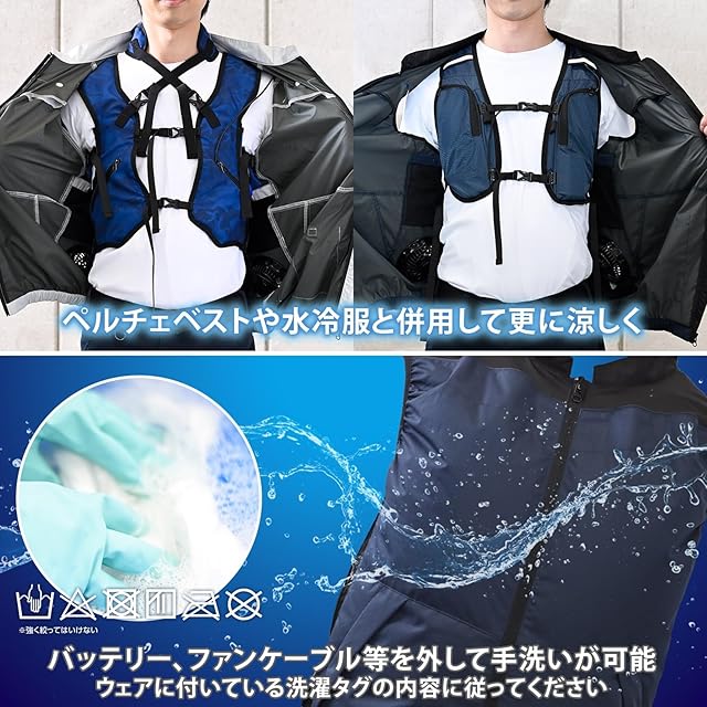 ベストタイプ(カラー:ネイビー)、風量:3段階(強・中・弱)、UVカット率:90%以上