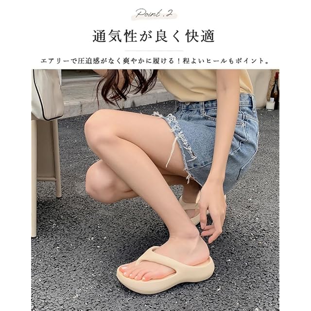[Fosys] トングサンダル ビーチサンダル サンダル レディース 厚底 歩きやすい 疲れない 軽量 美脚 おしゃれ (ベージュ, 日本の靴のサイズ寸法, 大人, 数値, 22.0 cm)