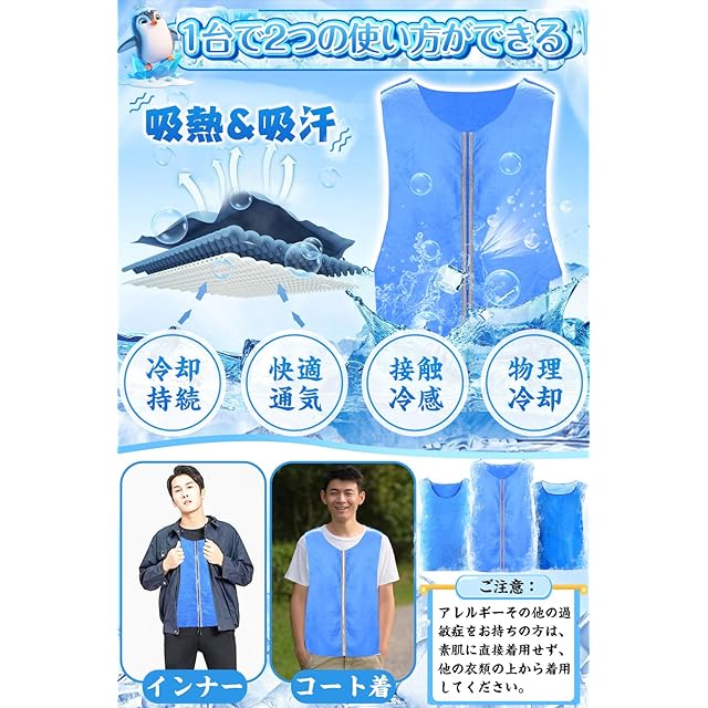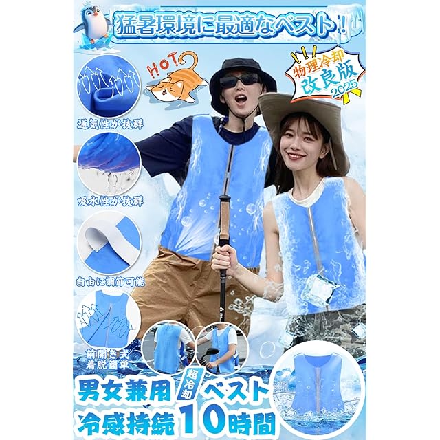 [PARALLEL MOMENT] 冷却ベスト クールベスト 熱中症対策グッズ 2025新登場 空調作業服 水冷 物理冷却 電気保冷剤不要 涼しい ひんやりウェア 保冷服 冷感作業服 農業 屋外作業 釣り 建設業 暑さ対策 夏用 父の日(JP, アルファベット, Free Size, ブルー)