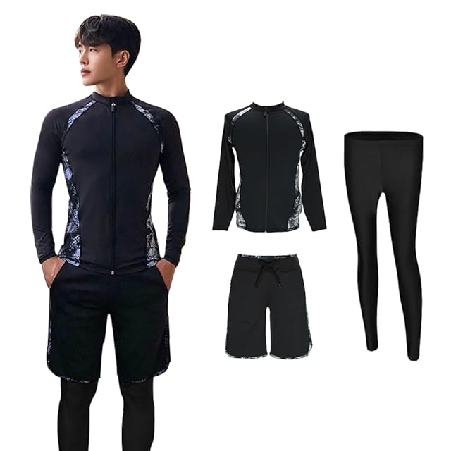 ラッシュガード メンズ 水着 長袖 レギンス サーフパンツ フィットネス水着 上下セット 3点セット 男性 UVカット 大きいサイズ 水陸両用 温泉 水泳 スポーツ 夏