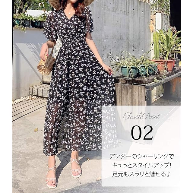 Check Point 01ふんわり爽やか夏らしい花柄ワンピースはリゾートにぴったり!アンダーのシャーリングでキュッとスタイルアップ!足元もスラリと魅せる♪