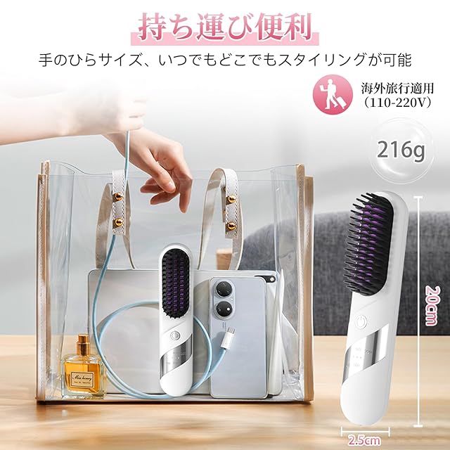 商品名:ストレートアイロン anfei ヒートブラシ ヘアアイロン 「サロン級ツヤ髪」 4段温調節 140℃~200℃ マイナスイオン 静電気防止 コードレス Type-C充電式 瞬時予熱 やけど防止 温度表示 ストレート&カール両用 プロ仕様 コンパクト ヘアブラシ 海外対応 軽量 男女兼用 プレゼント ホワイト 日本語取扱説明書