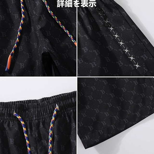 商品名:夏服 パンツ メンズ アイスシルクスポーツ ショートカーゴパンツ 快適 かっこいい カジュアル ハーフパンツ アルファベットの図案メンズ半ズボン速乾 7分丈パンツ black M