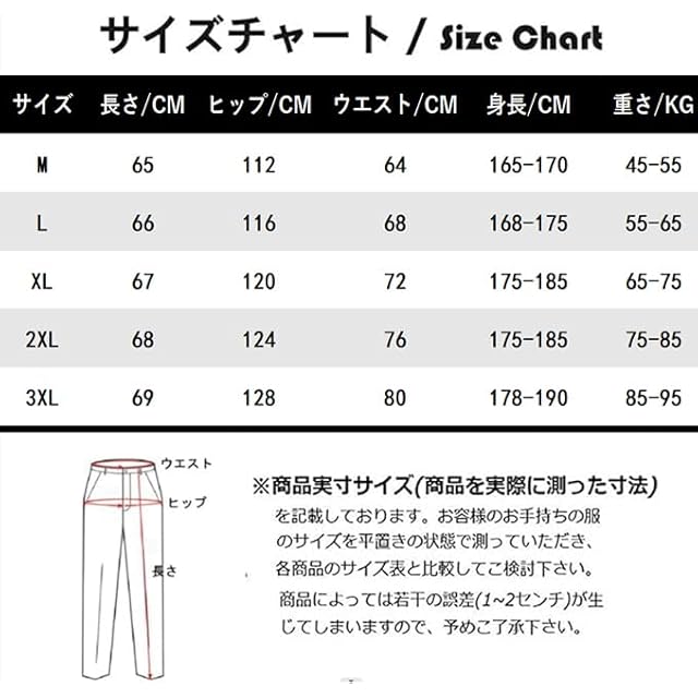 【SIZE:M】適応身長:165-170cm 体重:45-55kg; 【SIZE:L】適応身長:168-175cm 体重:55-65kg; 【SIZE:XL】適応身長:175-185cm 体重:65-75kg; 【SIZE:2XL】適応身長:175-185cm 体重:75-85kg; 【SIZE:3XL】適応身長:178-190cm 体重:85-95kg; サイズの詳細は左画像商品説明をご覧下さい。サイズは平置きでの採寸につき、若干の誤差がある場合がございます。