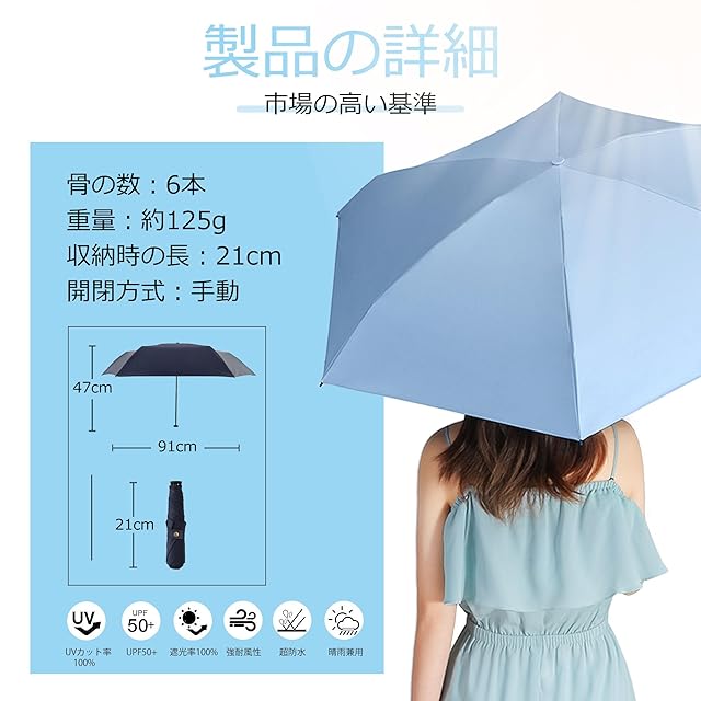 商品名:日傘 折りたたみ傘 超軽量 125 UVカット 晴雨兼用 遮熱 100遮光 日焼け止め対策 紫外線遮断 レディース かわいい 高密生地 超撥水 耐風 小型 携帯便利 Haomaomao