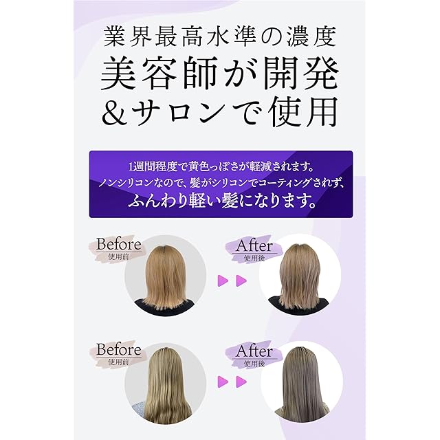 ☆【美しい髪色をキープ】髪を染めたばかりでも、時間が経つと黄色味が目立ってきます。しかし、&PURPLEの紫色の色素が黄色味を薄め、髪色を長持ちさせます。ブリーチやカラーリングのダメージを受けた髪にも効果的です。