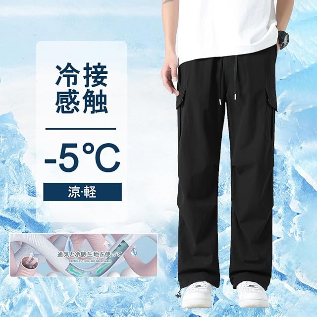 [BesBet] 冷感 カーゴパンツ メンズ 涼しい ズボン 夏服 アイスシルク ワイドパンツ アウトドア ワークパンツ ロング丈 ボトムス かっこいい 無地 ミリタリーぱんつ 大きいサイズ ゆったり 春 夏