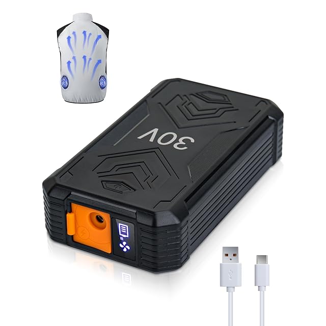 空調作業服 バッテリー 30V 30000mAh バッテリー DC/USBデュアル出力 4段階風速調節 LED液晶ディスプレイ搭載 Type-C急速充電 空調作業服用 停電対策 旅行/出張/アウトドア/防災/地震/緊急用などの必携品 (PSE認証済)