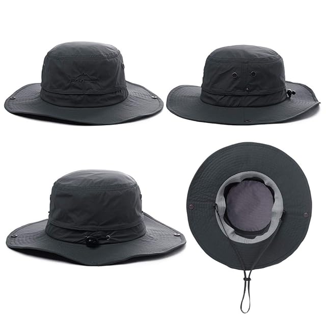 [TOP-EX] サファリハット メッシュ アドベンチャーハット 折りたたみ ブーニーハット おしゃれ フィッシングハット 釣り ミリタリーハット 日よけ帽子 ハット 帽子 メンズ 取り外す あご紐 春夏秋 つば広 uv アウトドア 自転車 登山 ゴルフ ハイキング 紫外線対策 (ダークグレー L/XLサイズ)