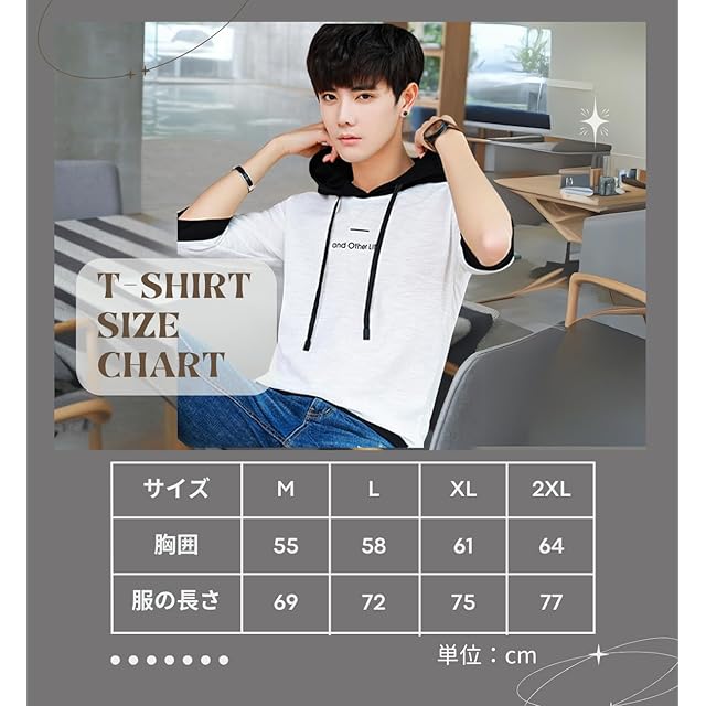 【1】で通気性もよく涼しげです。いまトレンドのビックTで全体的にゆったり目の作りでありながら着心地もよくGood。【2】フード付きロープのデザイン、帽子のタイトネスを調節できます.