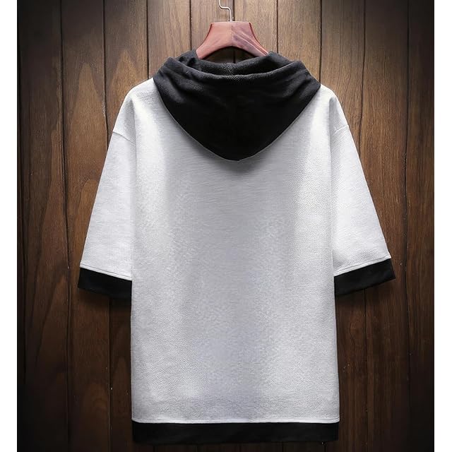 [foveitaa] 夏服 メンズ Tシャツ 半袖 無地 五分袖 パーカー メンズ おしゃれ 大きいサイズ カットソートップス フード付き インナー ゆったり カジュアル プルオーバー white 2XL
