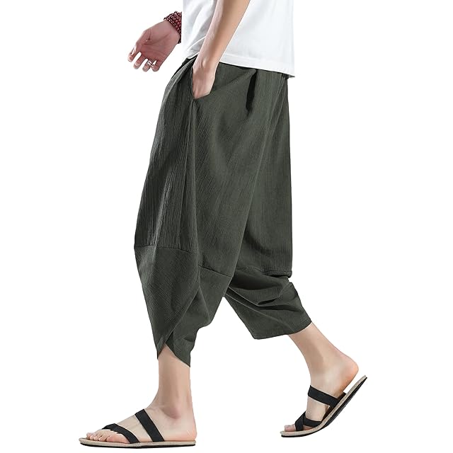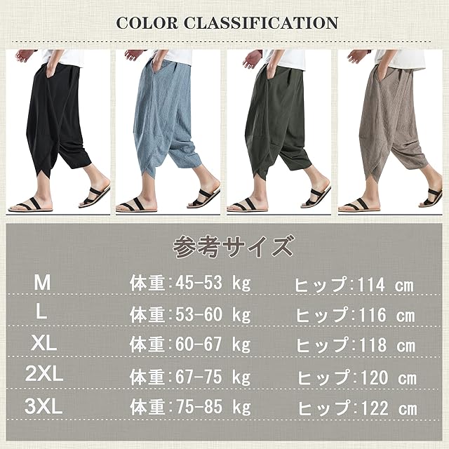 [HMT] サルエルパンツ メンズ ワイドパンツ 夏用 ズボン 7分丈 アラジンパンツ 大きいサイズ ゆったり ボトムス イージー ぱんつ 涼しい リネンパンツ エスニック 袴パンツ 春 夏