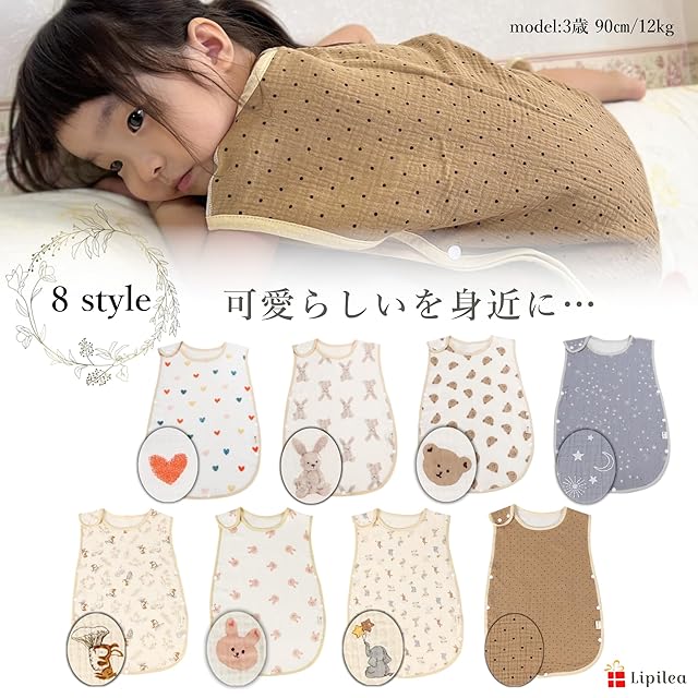 [Lipilea] リピレア スリーパー 赤ちゃん 4重ガーゼ 綿 100% 女の子 男の子 出産祝い 新生児 0~3歳 (2.くま&夜空【2枚セット】 ベビー