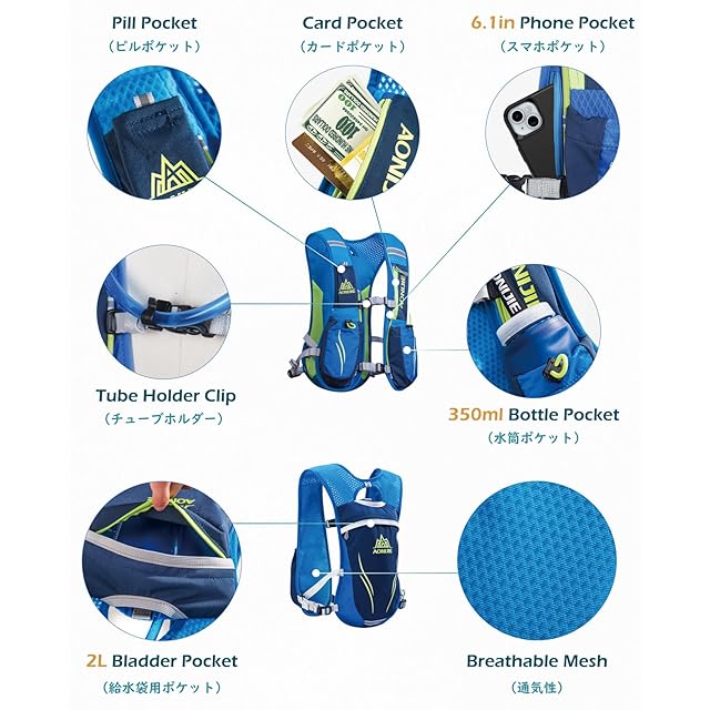 ✅【水分補給】-- 水筒/給水袋付。食用グレード材料を採用しており、BPA&PVCフリー、100%無臭無味。トレイルランリュックにぴったりです。マラソン、サイクリング、ハイキング、ジョギング、登山に最適。 購入前に、商品バージョンをご確認ください。