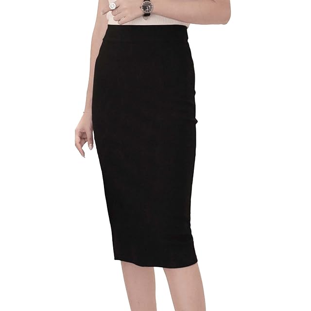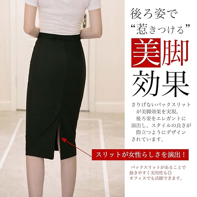 [ユニベイズ] ミニ〜ロング タイトスカート レディース 黒 ブラック スリット OL オフィス スカート ストレッチ (M, ブラック02)