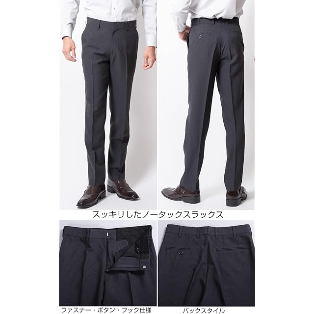[ユナイテッドゴールド] スラックス メンズ 裾上げ済み ノータック 春 夏 秋 ビジネス 洗える 【4】 グレー股下74cm ウエスト76cm