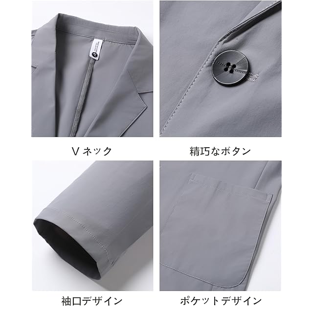 [MYMRIN] テーラードジャケット メンズ 夏 接触冷感 UVカット サマージャケット 通気 軽量 薄手 吸汗速乾 夏服 ストレッチ 耐シワ性 ビジネス カジュアル(グレー,XL)