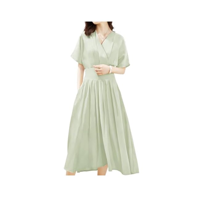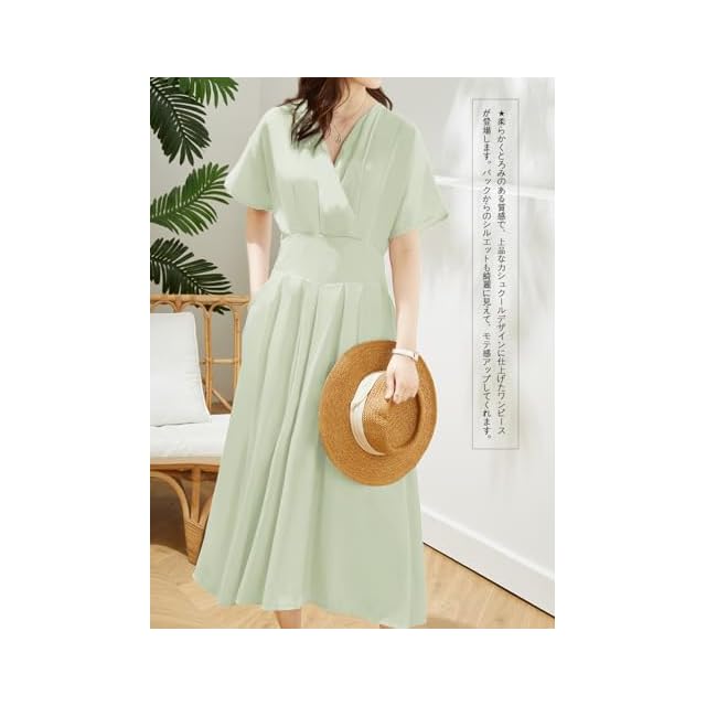 [Yino] ワンピース レディース マキシワンピース Vネック とろみ シフォン ウエストゴム シフォン ロングワンピース 大きいサイズ 半袖 裏地付き ゆったり 着痩せ お洒落 魅力 上品 夏 ワンピ