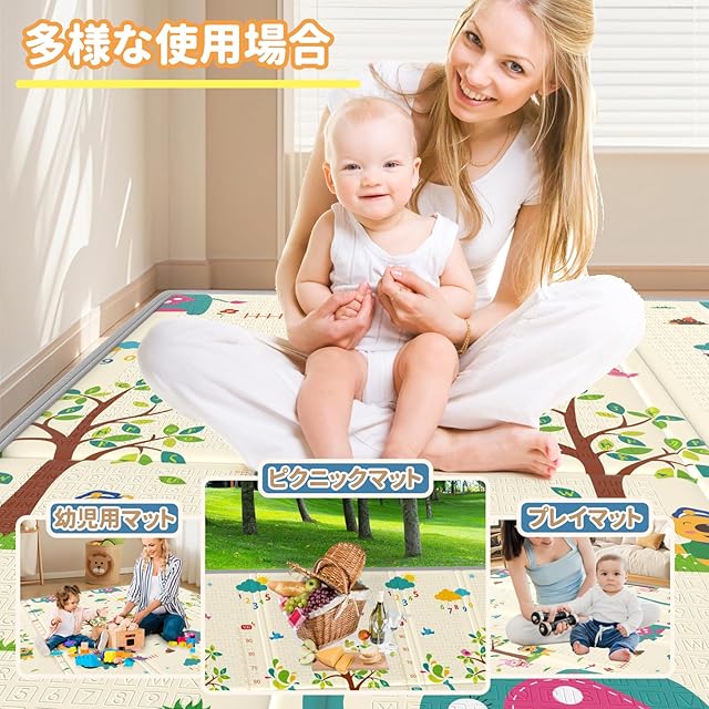 「高品質なXPE素材」:こちらのプレイマットは高品質なXPE素材を採用しており、有害な化学物質を含まない無害・無臭の素材で、柔らかくて弾力性があり、安心してプレイタイムを楽しむことができます。お子供様が歩き始めたり、遊んだりお昼寝したりに最適。ママもヨガや産後エクササイズをすることもおすすめです。