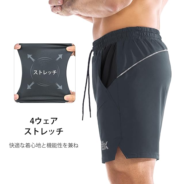 【便利な大きなポケット 筋トレ パンツ】 ジムやアウトドアでの運動中に、深さが適切な多機能ポケットを備え、スマホや鍵などの日常品を簡単に収納できます。スポーツシーンや日常生活の多用途に対応できるこの筋トレ ハーフパンツ メンズは、機能性と使いやすさを兼ね備えた理想的なアイテムです。