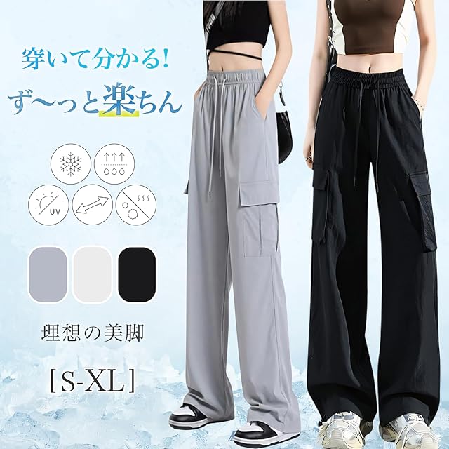 ♥♥カーゴパンツは厳選したポリエステル生地で、柔らかくて軽く、通気性や速乾性にもよいです!接触冷感素材を使い、履いた瞬間でひんやり涼感!両側にはポケット付きで機能性もバッチリ。春秋はもちろん、夏にも着用できる薄いロングパンツ一枚!ロング丈なので、脚長&美脚効果抜群!
