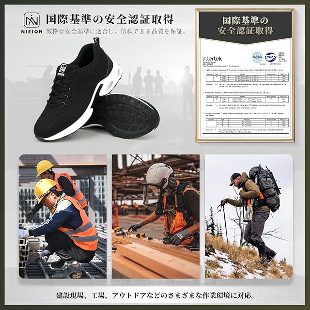 [nieion] 安全靴 作業靴 メンズ レディース エアクッション 安全スニ一カ一 鋼先芯 釘踏み抜き防止 軽量 耐滑 耐摩耗 衝撃吸収 工事現場 ワークシューズ セーフティーシューズ あんぜん靴 (ブラック&ホワイト 27.5cm)