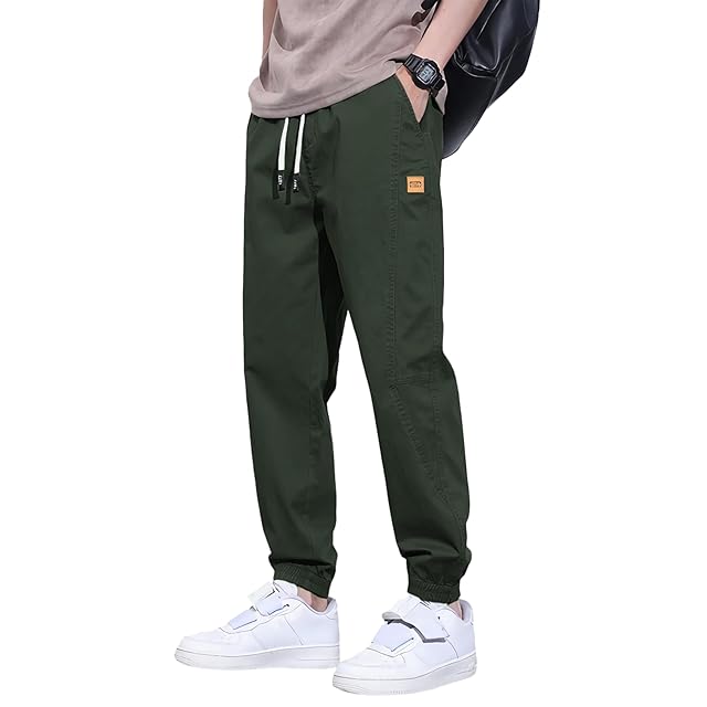 [Kayiyasu] チノパン メンズ ズボン パンツ ワークパンツ 大きいサイズ 裾リブ M~3XL ウエストゴム リラックス ボトムス 綿 黒 調整紐 アンクル丈 9分丈 ゆったり ずぼん かっこいい 無地 人気(3XL アーミーグリーン)