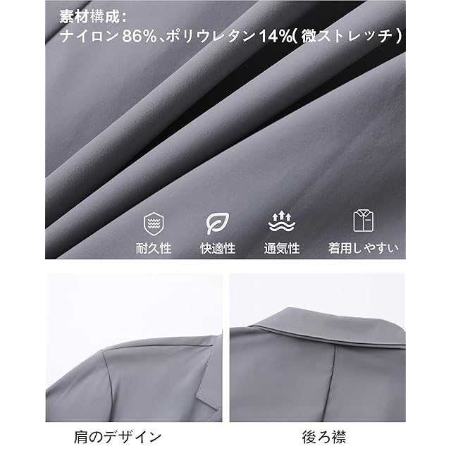 [MYMRIN] テーラードジャケット メンズ 夏 接触冷感 UVカット サマージャケット 通気 軽量 薄手 吸汗速乾 夏服 ストレッチ 耐シワ性 ビジネス カジュアル(グレー,2XL)