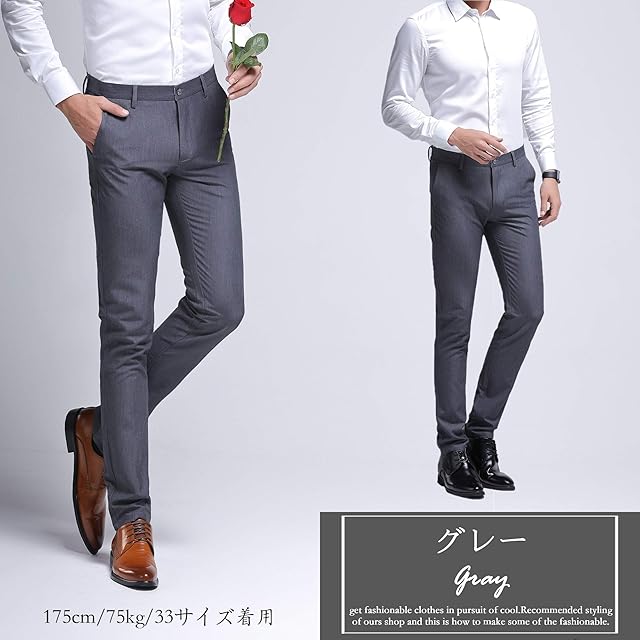 Gmardar ノータック スラックス メンズ ウォッシャブル スリム ストレッチ ビジネス フォーマル 薄手 夏 通勤 美脚 定番 仕事着 イージーケア パンツ ロングパンツ (30, グレー)