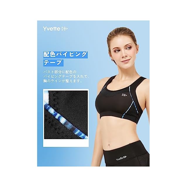 Yvette(イベット)スポーツブラ 揺れない レディース ハイサポートパッド 後ろホック付き ノンワイヤー メッシュ切り替え フィットネスブラ ブラック S(D-E)