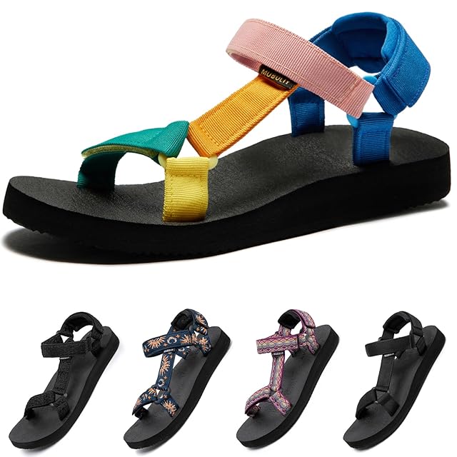 [STRDEOUT] スポーツサンダル レディース ストラップサンダル 外履きサンダル 夏用 ウォーキング 水陸両用 歩きやすい クッション 軽量 通気性 クラシック おしゃれ