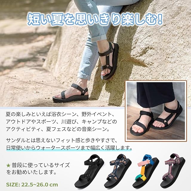 「歩きやすさ」「フィット感」「耐久性」にこだわり機能性を追求したスポーツサンダル。シンプルなプロダクトだからこそ、実現できるクオリティと安心感。どんなシーンにも溶け込むデザインを形にしました!夏と言えばアウトドアアクティビティ、スポーツ、川遊び、キャンプ・BBQ、そしてフェスなどの音楽シーンも楽しめるように履きやすくてタフなサンダルです!