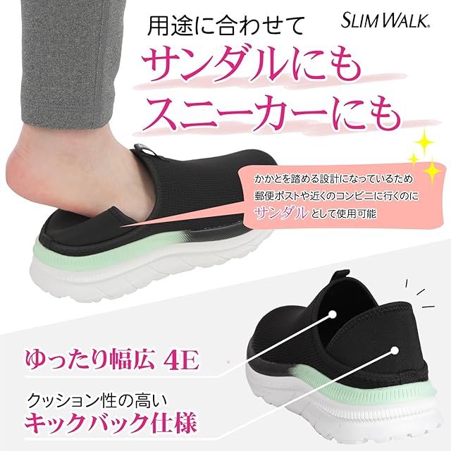 [スリムウォーク] かかとが踏める2Wayサンダルスニーカー 幅広4E 美脚インソール搭載 撥水加工 軽量 抗菌防臭 (ピンク, 日本の靴のサイズ寸法, 大人, 数値, 4_e, 23.0 cm)