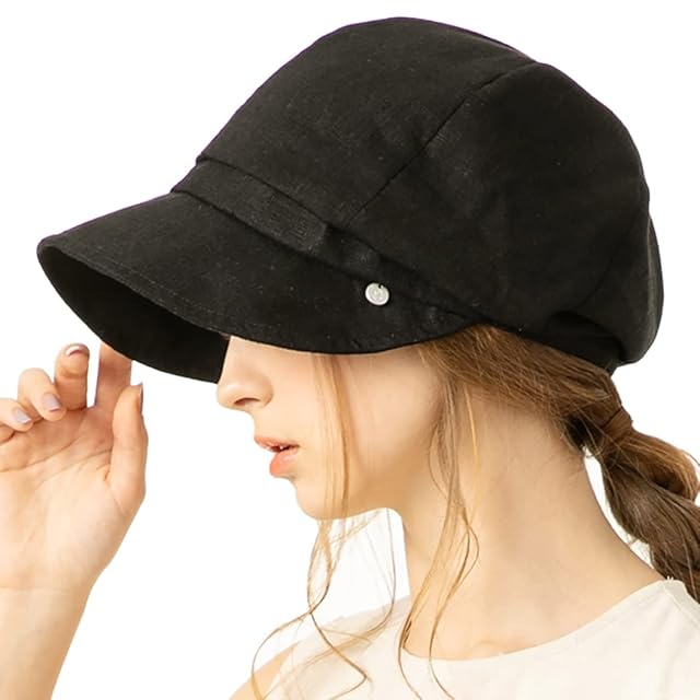 [Loo&c] [ルーアンドシー] 遮光100% UVカット 帽子 キャスケット レディース 大きいサイズ 小顔みせ メロウキャスケット 接触冷感 ハット 紫外線対策 サイズ調整可能 (JP, アルファベット, XL, ブラック)