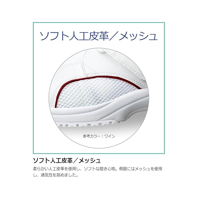 [素材] ●先芯:なし ●甲被:人工皮革/メッシュ ●中敷:EVAカップインソール(抗菌・防臭) ●靴底:EVA/合成ゴム