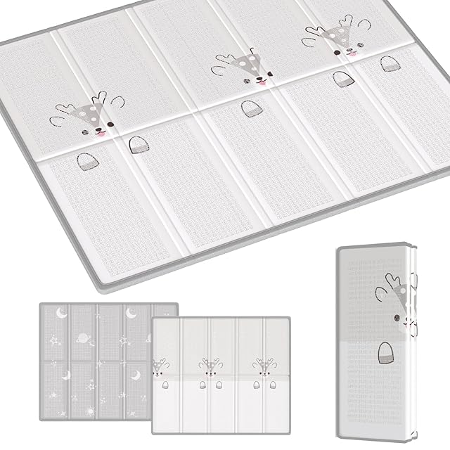 プレイマット 赤ちゃん 厚手 大判 ベビーマット 折り畳み 赤ちゃんマット 防水 ベビープレイマット 持ち運び お昼寝マット 防音 衝撃吸収 収納袋付き 収納しやすい 子供部屋 ピクニック (星月+鹿, 160cm×180cm×1cm)