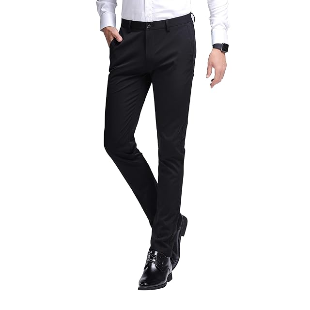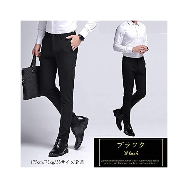 Gmardar ノータック スラックス メンズ ウォッシャブル スリム ストレッチ ビジネス フォーマル 薄手 夏 通勤 美脚 定番 仕事着 イージーケア パンツ ロングパンツ (29, ブラック)