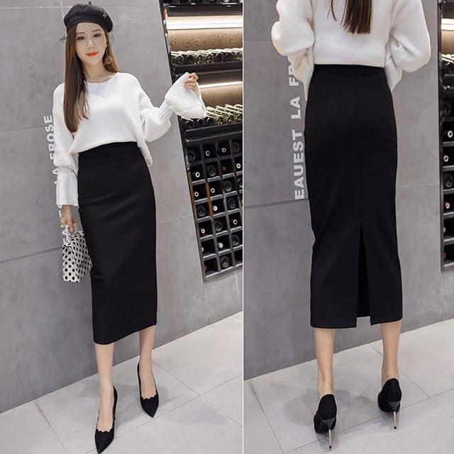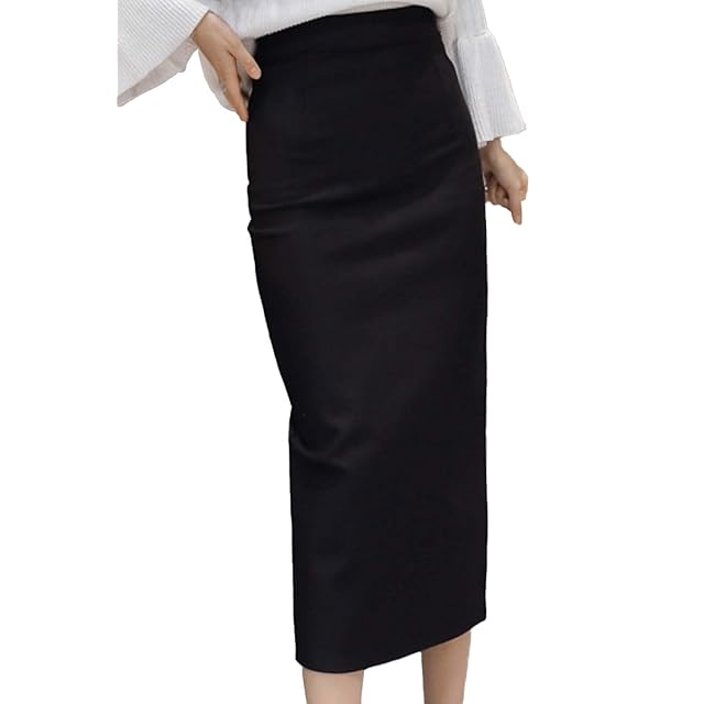 [ユニベイズ] ミニ〜ロング タイトスカート レディース 黒 ブラック スリット OL オフィス スカート ストレッチ (L, ブラック03)