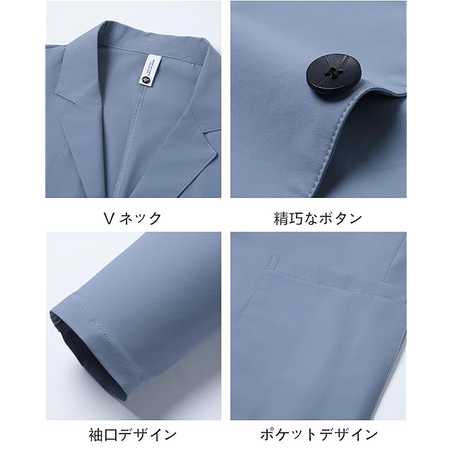 [MYMRIN] テーラードジャケット メンズ 夏 接触冷感 UVカット サマージャケット 通気 軽量 薄手 吸汗速乾 夏服 ストレッチ 耐シワ性 ビジネス カジュアル(ライトブルー,M)