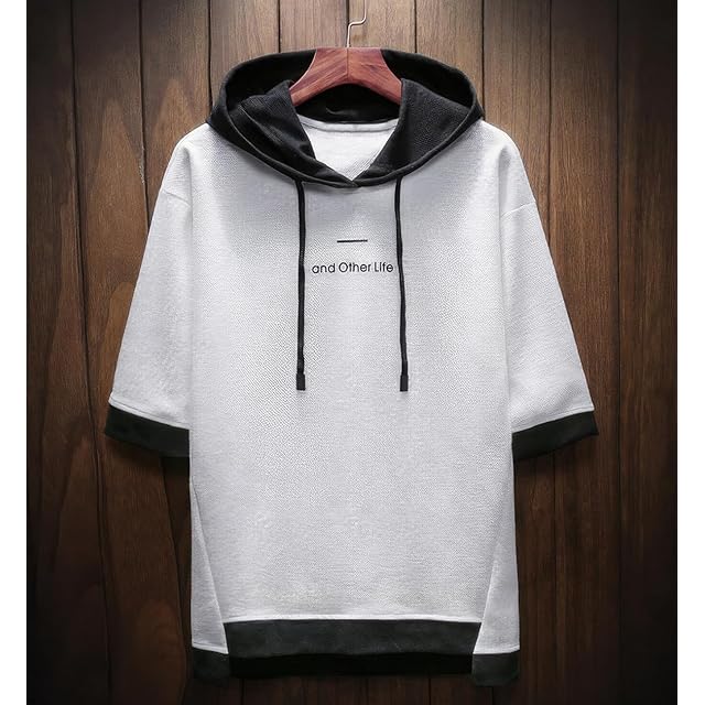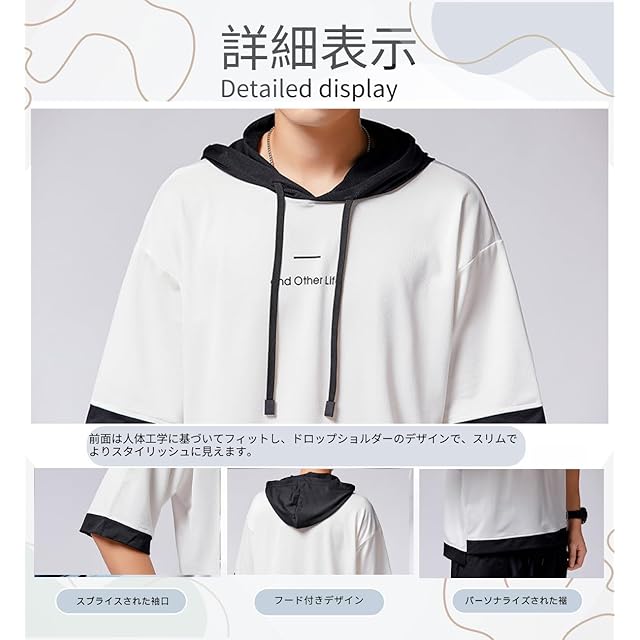 [foveitaa] 夏服 メンズ Tシャツ 半袖 無地 五分袖 パーカー メンズ おしゃれ 大きいサイズ カットソートップス フード付き インナー ゆったり カジュアル プルオーバー white L