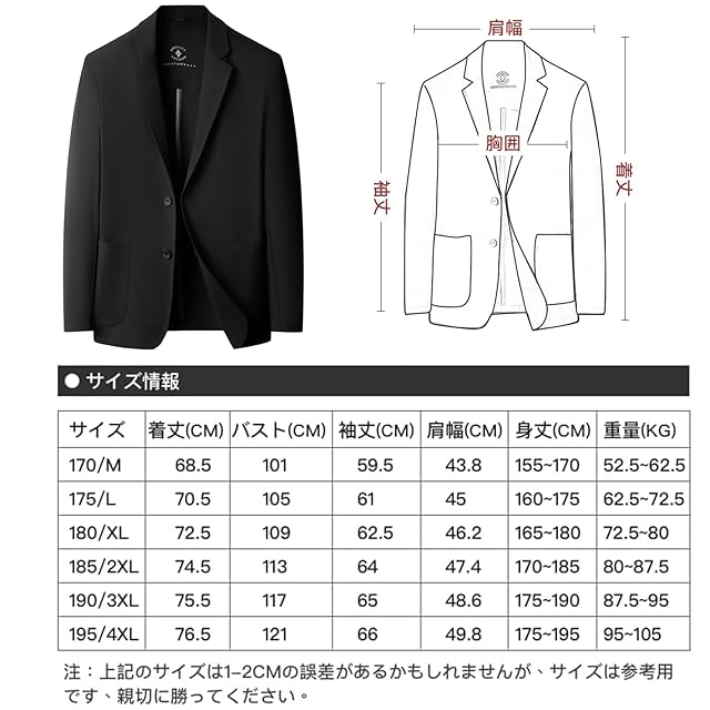 [MYMRIN] ジャケット メンズ 夏 春 秋 冷感 極薄 通気 サマージャケット 耐シワ性 涼しい カジュアル ビジネス ブレザー(ブラック,2XL)