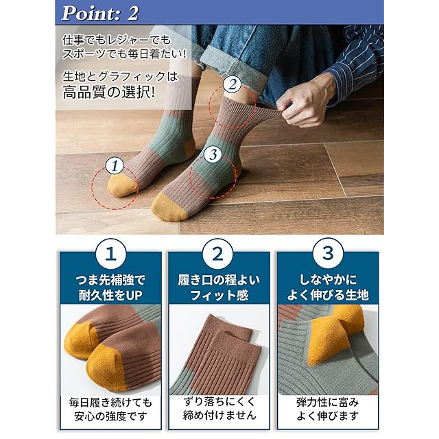 [Amtop] 靴下 メンズ ソックス 抗菌防臭 スポーツソックス 綿 通気性 吸汗 室内 臭わない 5足セット 春夏秋冬 カラフルソックス 24-28cm (5足組-3)