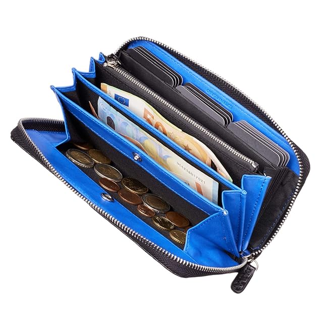 [CHRISTIAN BELETT] カーボン monoマガジン 掲載 下町の財布屋さんが作った 軽くて 使いやすい メンズ 長財布 カード縦型収納 大型BOX小銭入 ギフト箱入り (Black×Blue)