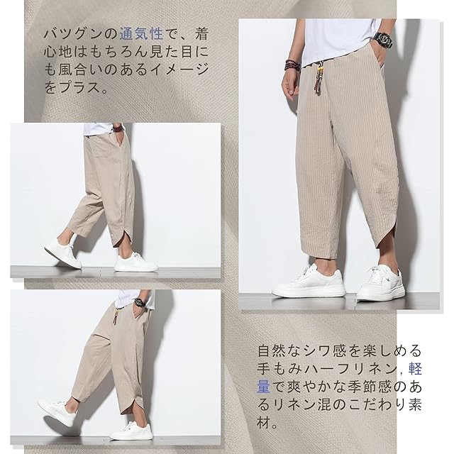[HMT] サルエルパンツ メンズ 夏用 7分丈 綿麻 リネンパンツ 春 夏