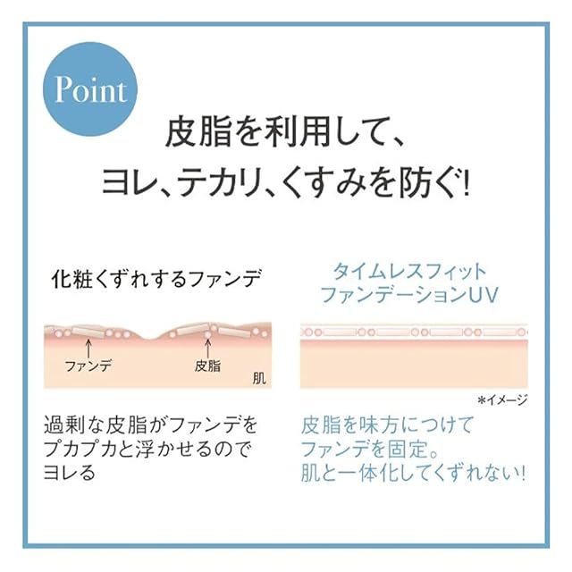 皮脂がファンデを固定化して肌に密着させるからテカリ・化粧崩れ心配なし。サラサラ肌をキープして夕方までキレイ続く。