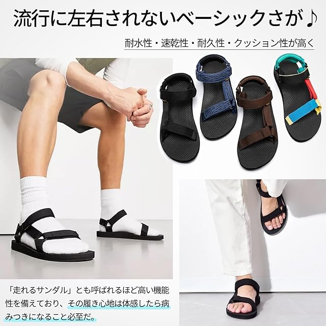 [STRDEOUT] スポーツサンダル メンズ ストラップサンダル 外履きサンダル 夏用 ウォーキング 水陸両用 歩きやすい クッション 軽量 通気性 クラシック おしゃれ