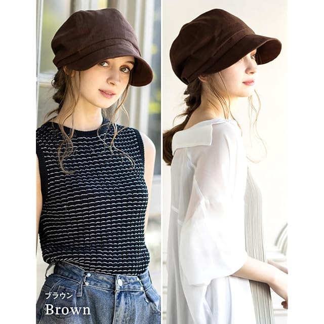 [Loo&c] [ルーアンドシー] 遮光100% UVカット 帽子 キャスケット レディース 大きいサイズ 小顔みせ メロウキャスケット 接触冷感 ハット 紫外線対策 サイズ調整可能 (ブラウン, L(58-61cm))